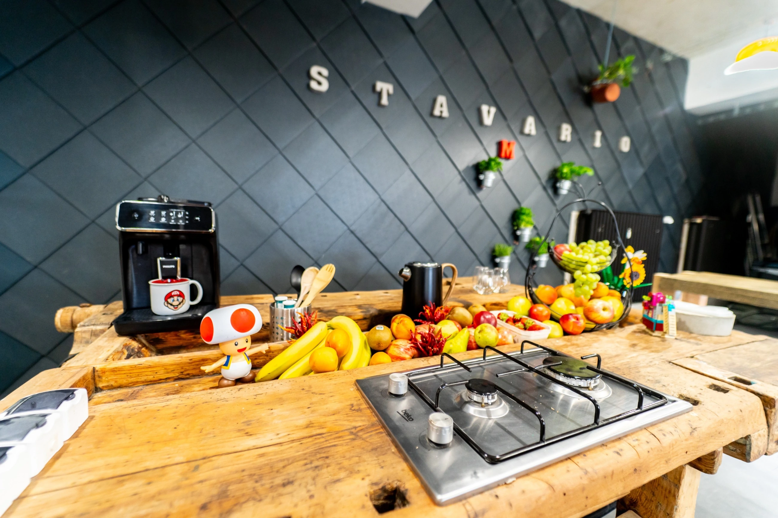 Pauza na kafe, rychlý oběd nebo večerní posezení s komunitou. Moderní kuchyňka s veškerým vybavením je připravená kdykoli – od ranního espressa po večerní toast.