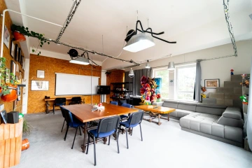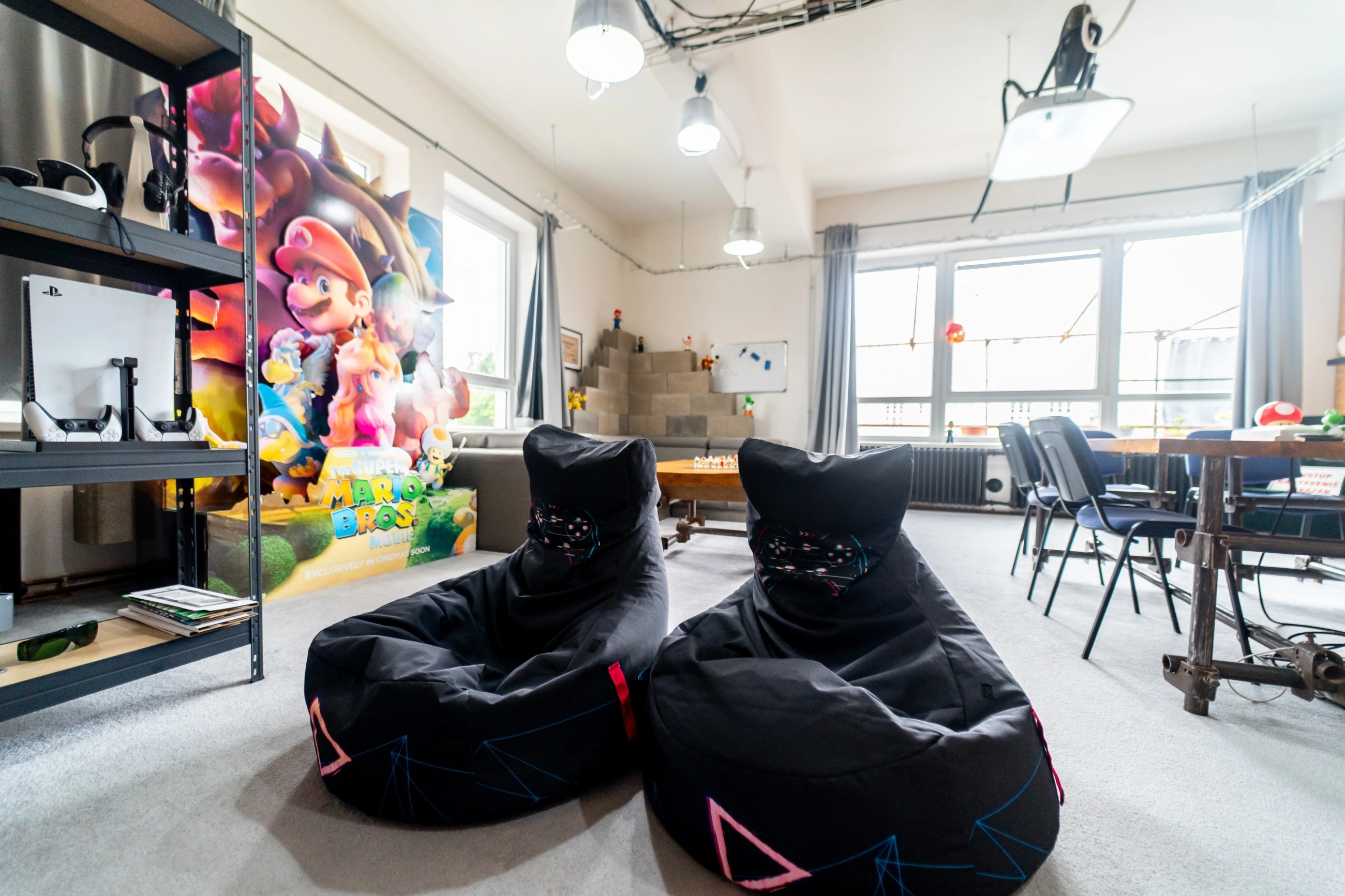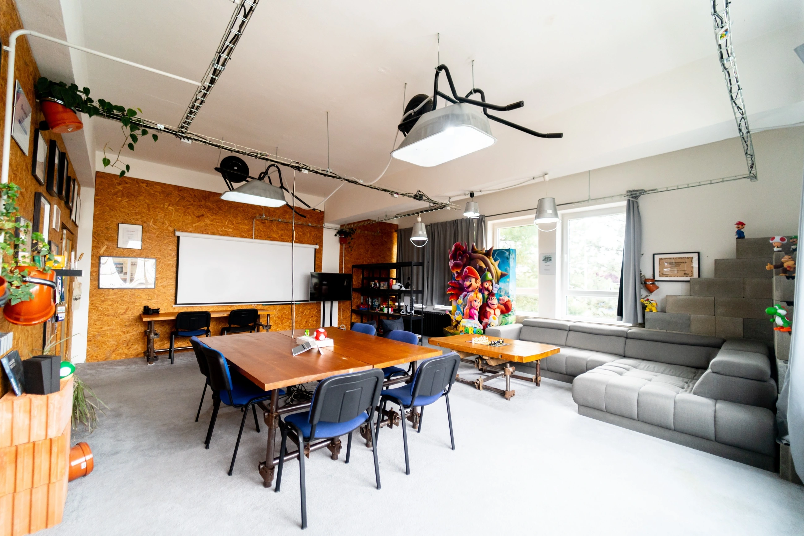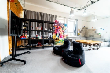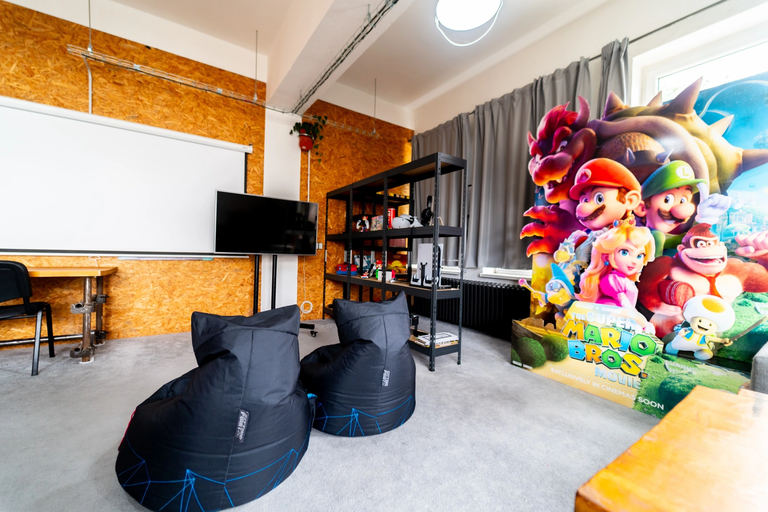Prostor, který se přizpůsobí tobě. Přes den ideální na schůzky a brainstorming, večer se mění v hernu s konzolemi, gaučem a projektorem. Práce i zábava na jednom místě.